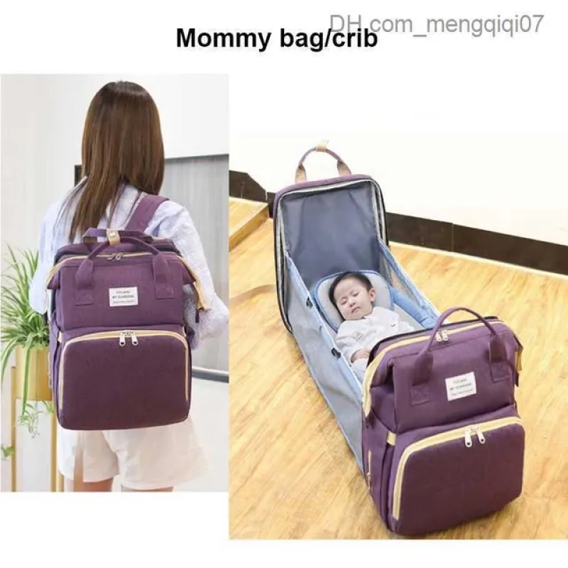Diaper Bags New Folding Mom's Bag Lightweight Folding Baby Bed Large Capacity Baby Backpack Mom Baby Diaper Bag Z230816