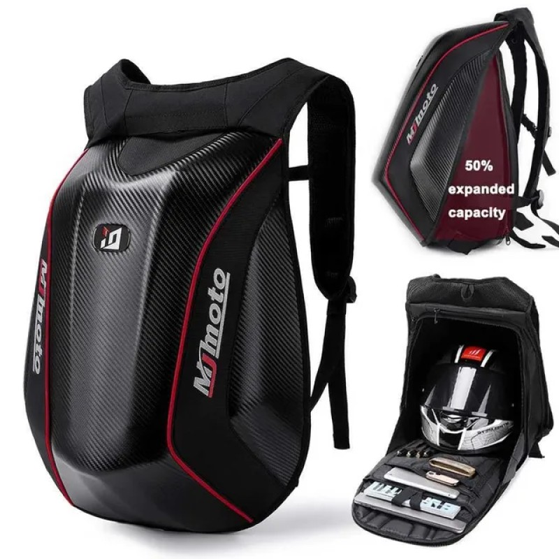 Carbon Fiber Motorcycle Backpack Motocross Helmet Bag Waterproof Motorsport Riding Backpack Expandable Hard Shell Bag Reflective S25820