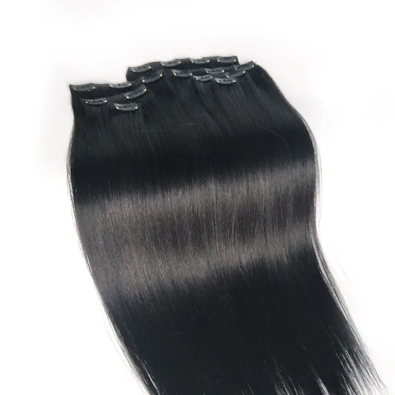 Full Head indian remy human hair clip in extensions Black Brown Straight Virgin clip in hair extensions for black women 70g 100g 120g (Natural Black Color)