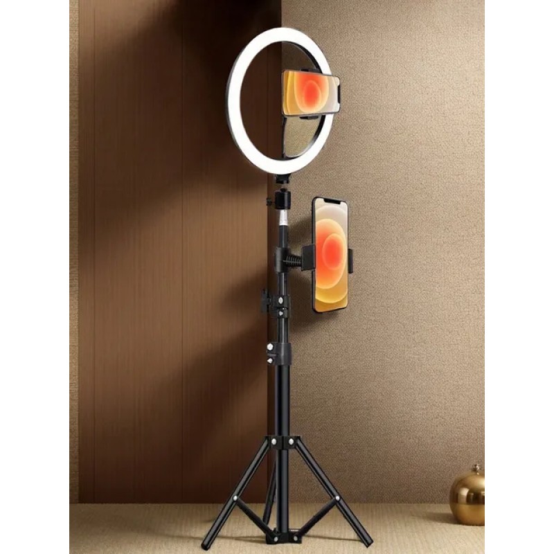 110cm Tripod Stand +O-Clamp With 10-Inch Live Stream Ring Light, Selfie Remote, (black)