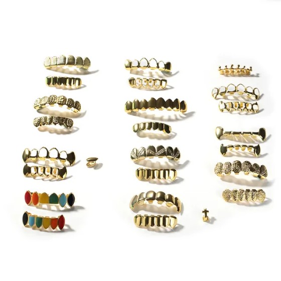 Mens Gold Grillz Teeth Set Fashion Hip Hop Jewelry High Quality Eight 8 Top Tooth & Six 6 Bottom Grills