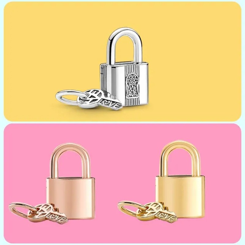 Padlock and Key Dangle Charm 925 Sterling Silver For Women designer jewelry Bracelet Making Rose Gold Charms with Retail Box Free Shipping Gift Wholesale