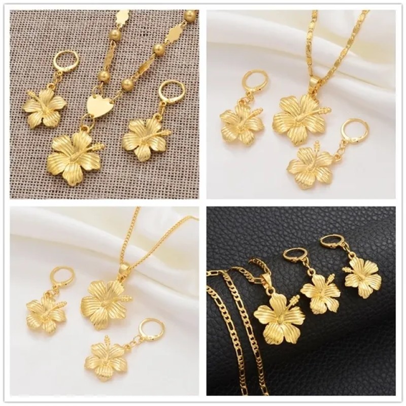 Anniyo Hawaiian Flower Jewelry Sets Pendant Necklaces Earrings Women Girls Gold Color Micronesia Guam Chuuk Kwajalein #213106 201222