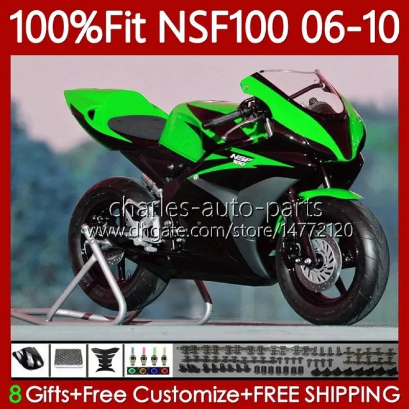 Race Fairing For HONDA Fiberglass NSF100 NSF-100 NSF 100 2006 2007 2008 2009 2010 Bodywork 116No.80 NS-F100 Green Black 06 07 08 09 10 Injection Mold Glass fiber Body