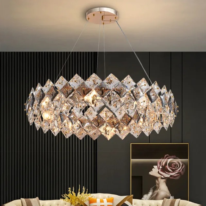 Modern Living Room Light Pendant Lamps Fixtures Luxury Crystal Bedroom Chandelier Dining Room Table Home Decor Led Cristal Rectangle Hang Lamp (Shade)