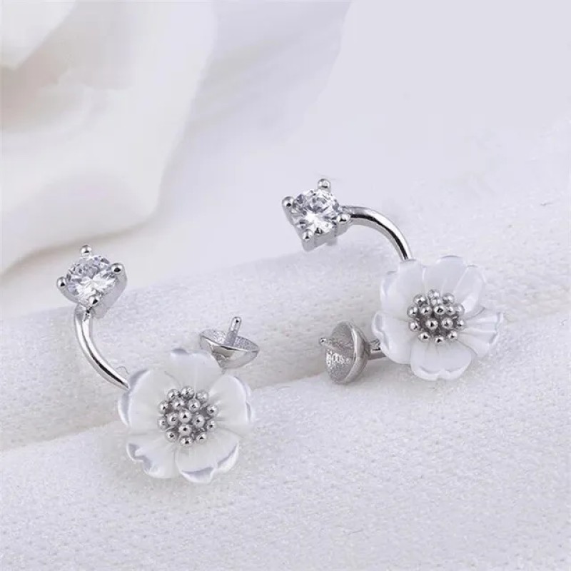 Earring Blank White Shell Flower Curved Earring Pearls Semi Mount 925 Sterling Silver Findings 5 Pairs