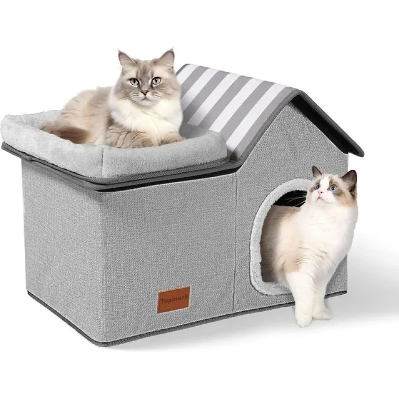 Topmart Cat House With - Large Indoor Condo, 2-in-1 Pet Bed for Kittens and Small Cats, Grey