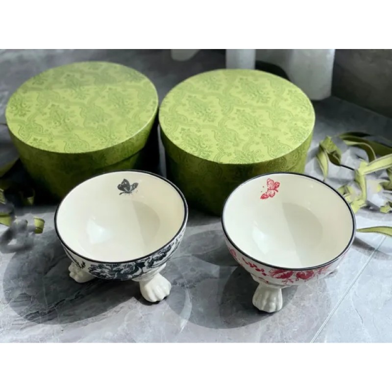 home furniture Designer Ceramic Pet Bowl Vintage Floral Butterfly Pattern Cat Bowl Dog Bowl Pet Feed Bowl Anti knock Pet Tableware (Size Size Guide)