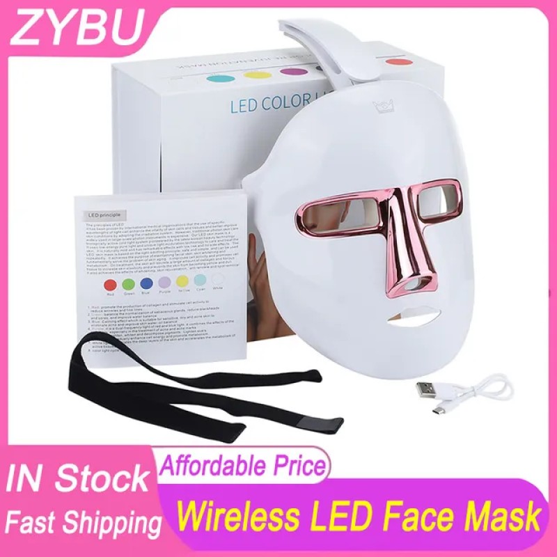 DESCRIPTION New Arrival Home Use 7 Colors Light LED Facial Mask Wireless Face Care Acne Treatment Beauty Mask Anti Wrinkle Therapy Face Whitening Skin Rejuvenation Machine Notice:The price is not included import tax if the package happens tax when the package is entering delivery country,we usually declare lower price for way bill, thank you Specification Item Type: 7 Color LED mask Material: ABS+Silicone Color:White LED: 90*3pcs Power:3.7W Product voltage:DC 5V Battery capacity:700mAH Charging time: 2.5H Using time:5H Product weight: 323g Product Include 1* LED mask 1* USB Cord 1* Manual 1* Box Feature 1.Visual Eye Window & Wireless Use. You can enjoy the photon LED spa anytime and anywhere while playing on the phone or reading a book.700mAh Large Battery, After full power use 5H. 2.7 Colors of LED Light. Specific wavelengths of light (IPL) are adopted to offer skin comprehensive care. They can improve skin elasticity & status, reduce oil secretion, fade skin imperfections, and even treats skin disorders. 3.One touch button. Press and hold for 1.5 seconds to turn on and off the machine, short press to select the color; press the eighth time, 7 colors cycle 4.High quality LED lamp beads. Up to 90 beads of high purity, high power, low attenuation and low refraction are integrated in one single mask to irradiate the whole face with intense light, achieving unparalleled rejuvenating effect. 5.Safe & Comfortable Wearing Experience. With a transparent window & a light-proof structure, it cause no harm to eyes & no disturbance to daily life; the mask is equipped with a fixed elastic band, and comes with 1 , it can easily fit all sizes of head. 6.Perfect Companion of Facial Mask. By opening skin absorption channels, it can triple the absorption effect of a facial mask. We highly recommend that you apply skin care products before using it. Operation 1. Clean your face first 2. Apply a mask or apply a serum 3. Wear a mask and adjust the appropriate tightness 4. Long press fo
