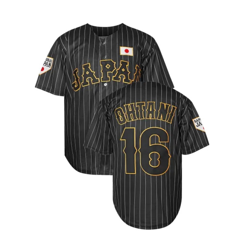 IN STOCK Mens Japan 16 OHTANI Baseball Embroidered Jersey White Black Stiched Nmae Number (Size Size Guide)