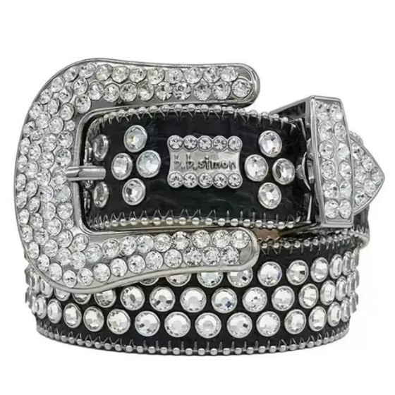 Designer Bb Belt Simon Belts for Men Women Shiny dia belt on Black Blue white multicolour with bg rhies as gift 46 (Options:Subject to the colors in the picture)