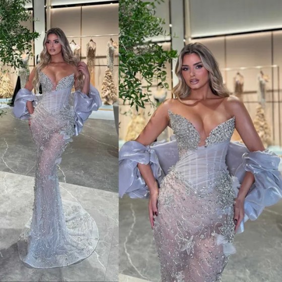 Find a full range of boutique occasion dresses from Wholesale companies and dropship suppliers, brand customizable sequined mermaid grey evening dress with sparkling crystals and appliques for cocktail parties at great prices and fast delivery.