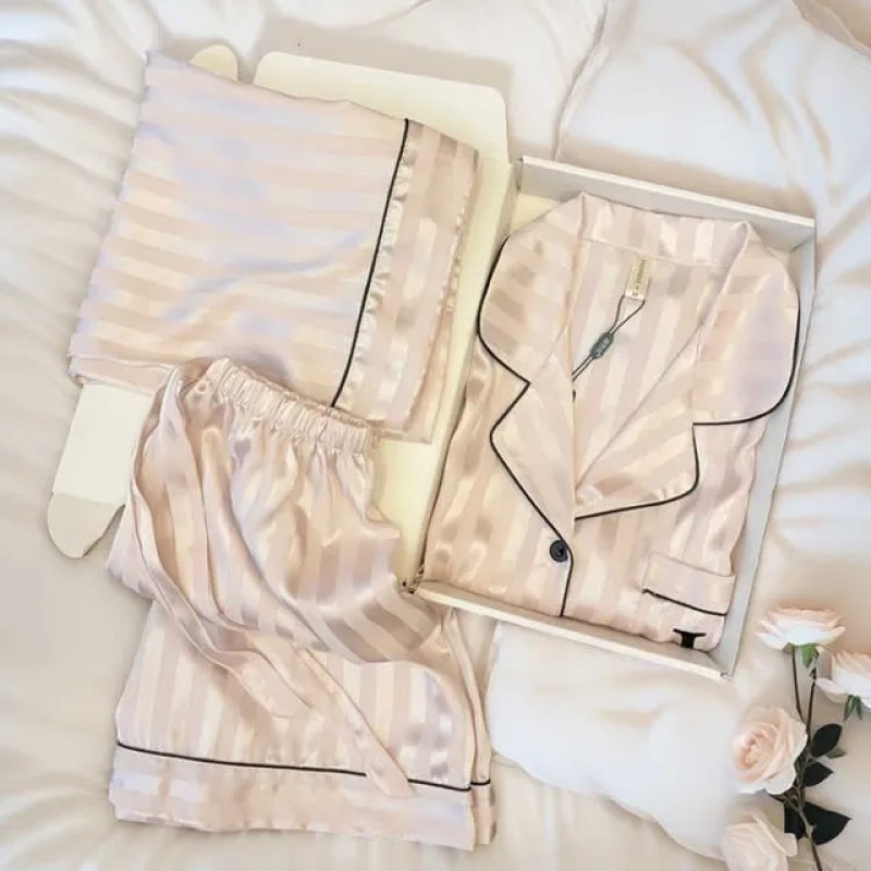 Fashionable home wear Striped Ice Silk Pajamas Highend Feel Wearable Luxury Threepiece Set Short Sleeve Womens Summer Homewear Y251016