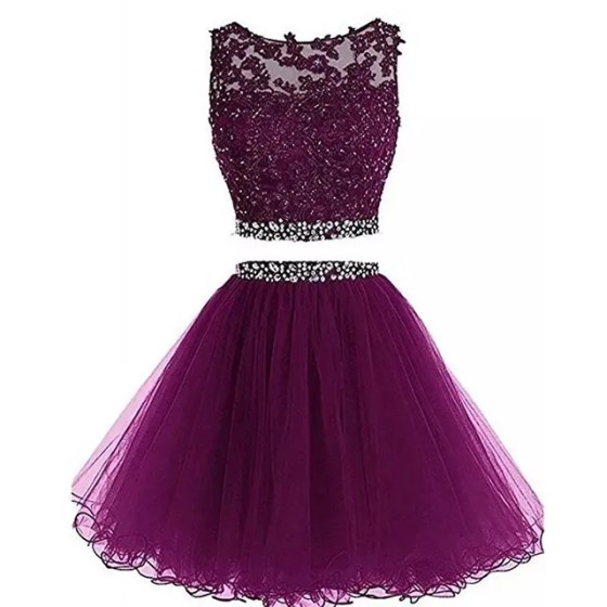 Two Pieces Short Prom Homecoming Dresses 2021 A Line Tulle Beaded Crystals Appliques Graduation Cocktail Party Gown QC1303 (Size Size Guide)