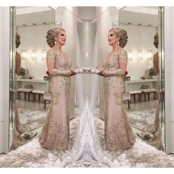 Of Bride A Made Dresses The Mother Custom E Sheer Long Sleeves Formal Godmother Evening Wedding Party Guests Gown Plus Size Q140 0509 0510 vening (Size Size Guide)