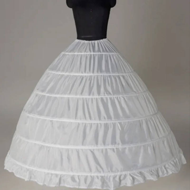 New 6 Hoop Crinoline White Black Long Wedding Petticoat Ball Gown Dress Underskirt Skirt Half Slips Wedding Bride Accessories LG0339 (Black)