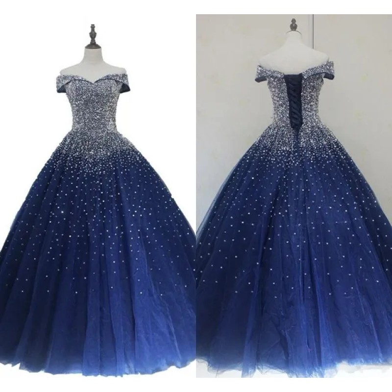 Do not worry about the size and come to buy plus size dinner wear,plus size outfit ideas and womens extra large dresses on DHgate.com. Navy Blue Formal Gowns: Beaded Off-The-Shoulder A-Line Tulle Dress for Sweet 16, Prom, Pageant, and Special Occasions in lovemydress is your best choice.