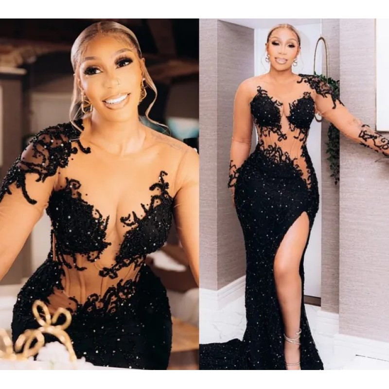 2022 Plus Size Arabic Aso Ebi Black Mermaid Sparkly Prom Dresses Lace Beaded Sexy Evening Formal Party Second Reception Birthday Engagement Gowns Dress ZJ334