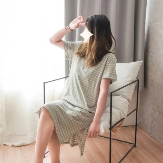 B510-Unprinted color spinning quality Tianzhu cotton knitted striped pajamas home dress wholesale ladies short-sleeved nightdress pure cotton female