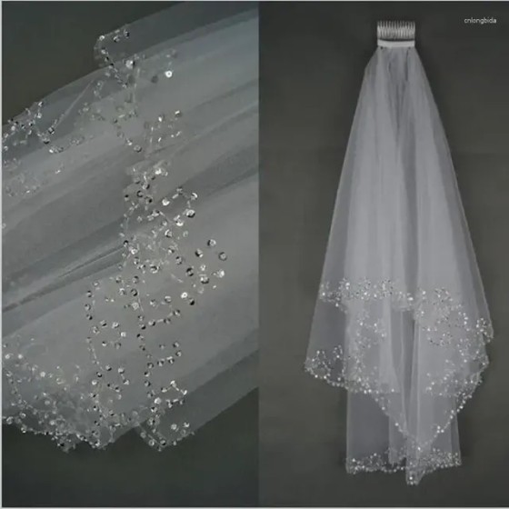 Bridal Veils Short Beaded Wedding Veil Two Layer White/Ivory Sequin Tulle 75 CM Length With Comb Edge Woman Accessories
