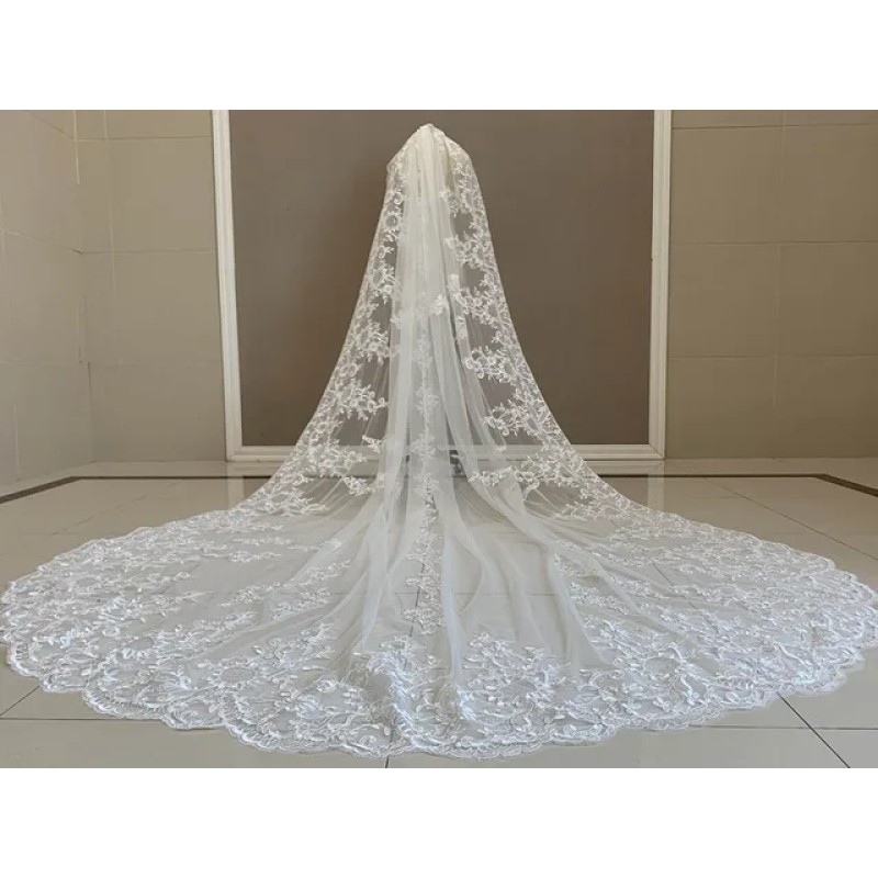 Buyers' PicksBrillant Bridal Veils Luxurious White Ivory Cathedral Long Voile Mariage Lace Wedding Veil Tulle With Comb Bride Accessories Two Layers Cathedral Length