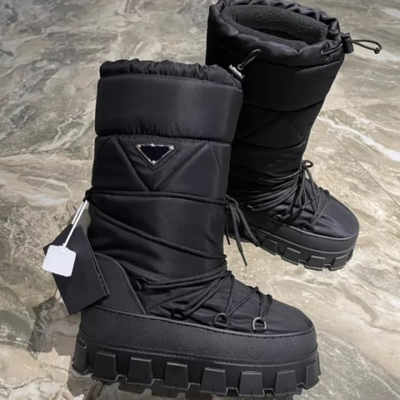 Fur Boot Shearling Apres-ski Boots designer Women Boots Nylon Gabardine Apres -ski Boots Ankle Boots Booties Winter Autumn Skiing High Quality Thick-soled with LOGO (Size Size Guide)