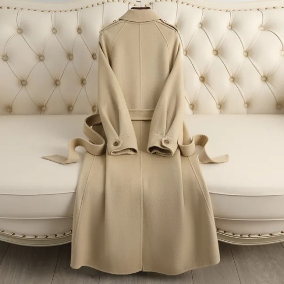 D5066 Double-faced cashmere coat for women 2024 autumn and winter new style over the knee Hepburn style temperament fashion high-end (Color 14 - Size Size Guide)