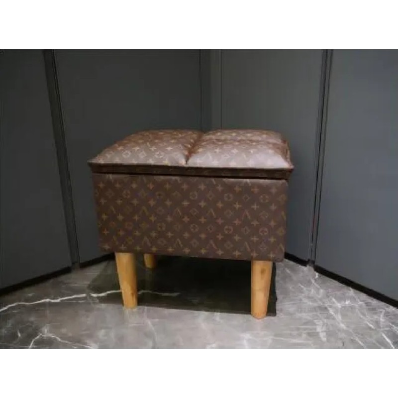 luxury classic Solid wood square home sofa stool fashion shoe changing stool designer letter logo leather storage stool living room bedroom office furniture chair