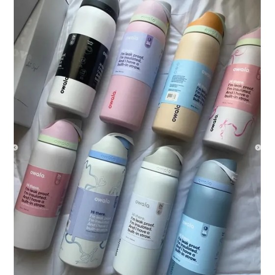 US Stock OWALA Cups 24oz 32oz Large Capacity Tumblers Insulated Cup Outdoor Sports Pink Bows Water Bottles Bounce Portable Handheld Travel Mug