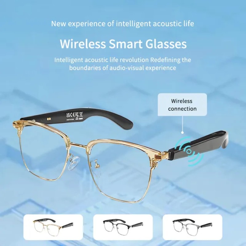 LIGE Smart glasses, adaptive photochromic lenses with light, open ear speakers and microphones Wireless call music control sports outdoor glasses