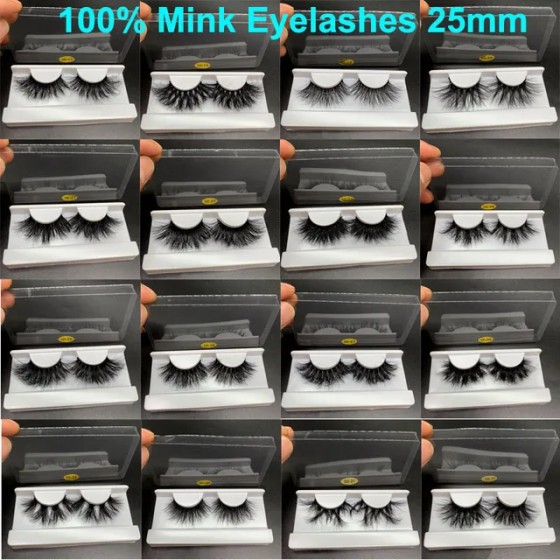 Real Mink Eyelash Soft Fluffy False Eyelashes 25mm Messy 3D 5D Lashes Luxury Natural Big Volume Lashes Crossed Thick Curl Long Dramatic Lash Makeup Tools