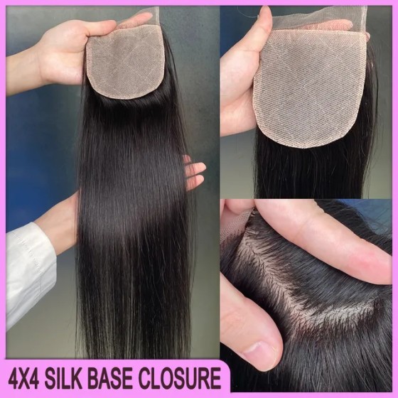 Glamorous 100% Raw Virgin Human Hair 4x4 Silk Base Closure 1 Piece Natural Color Silky Straight Hair Extension
