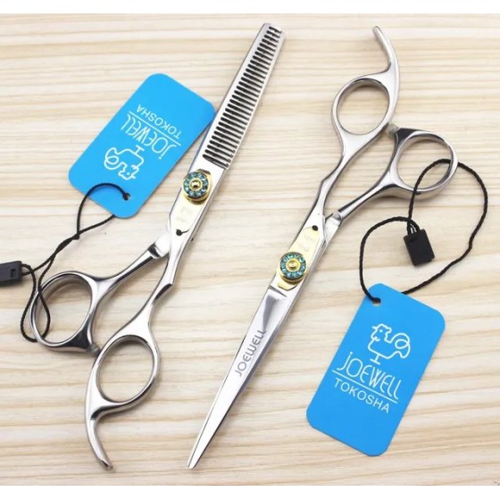 JOEWELL 6.0 inch silver handle hair cutting/ thinning hair scissors with gemstone 6CR professional barber tool