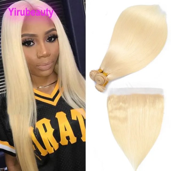 Brazilian Virgin Hair Extensions 613# Blonde Silky Straight Body Wave Human Hair Bundles With 13X4 Lace Frontal 4 pieces/lot