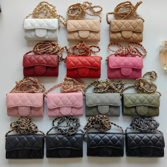 Fashion Designer Wallets Caviar Cowhide Ball Pattern Quilting Pouch Short Cuir Credit Card Holder Bags Women Of Golden Spliced Leather Chain Coin Purse 2Ed