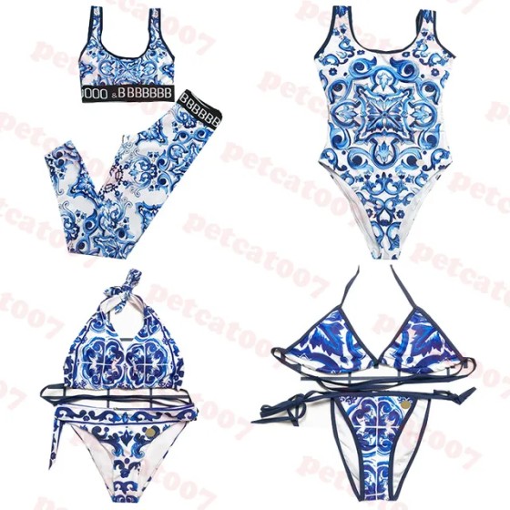 Blue Pattern Swimsuit Womens Bikini Designer Ladies Yoga Wear Swimwear Sexy Lace Up Bathing Suit