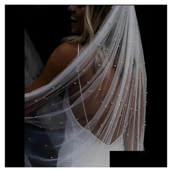 Bridal Veils Romantic Tulle 1 Tier Pearl Wedding Veil With Metal Comb White Ivory Long Bride Hair Accessories Dl0126 Drop Delivery , P Otnsx