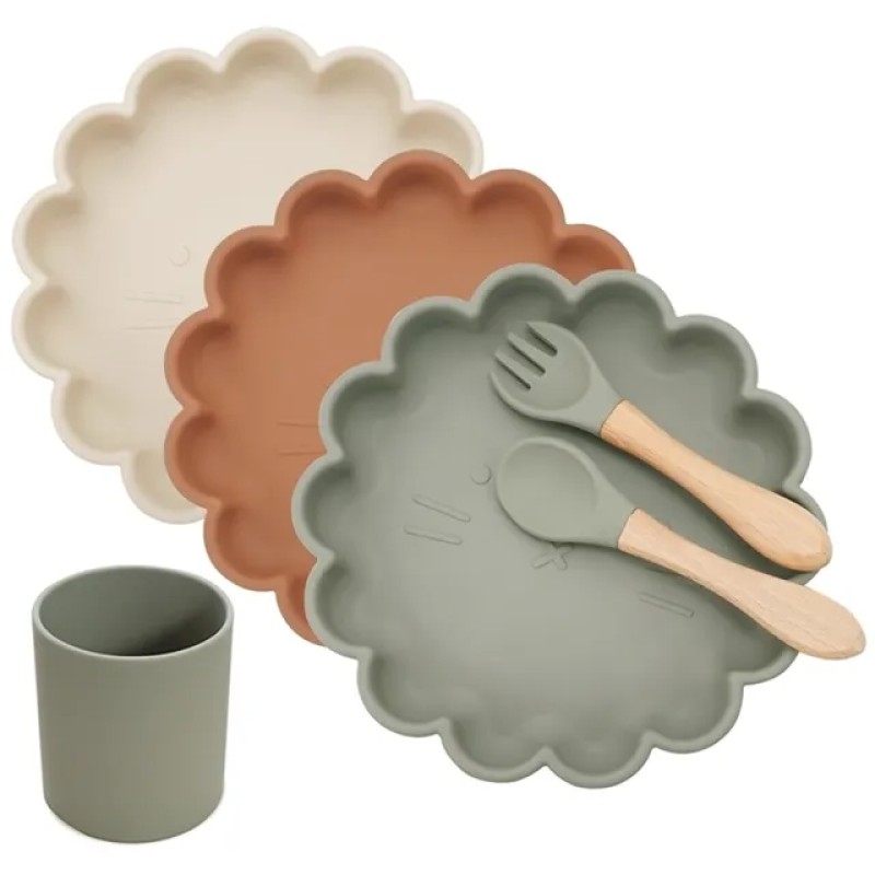 3pcs Gift Set BPA Baby Feeding Dining Appliance Silicone Dishes Plate Bowl Training Fork Spoon Drinking Cup born Accessories 211026