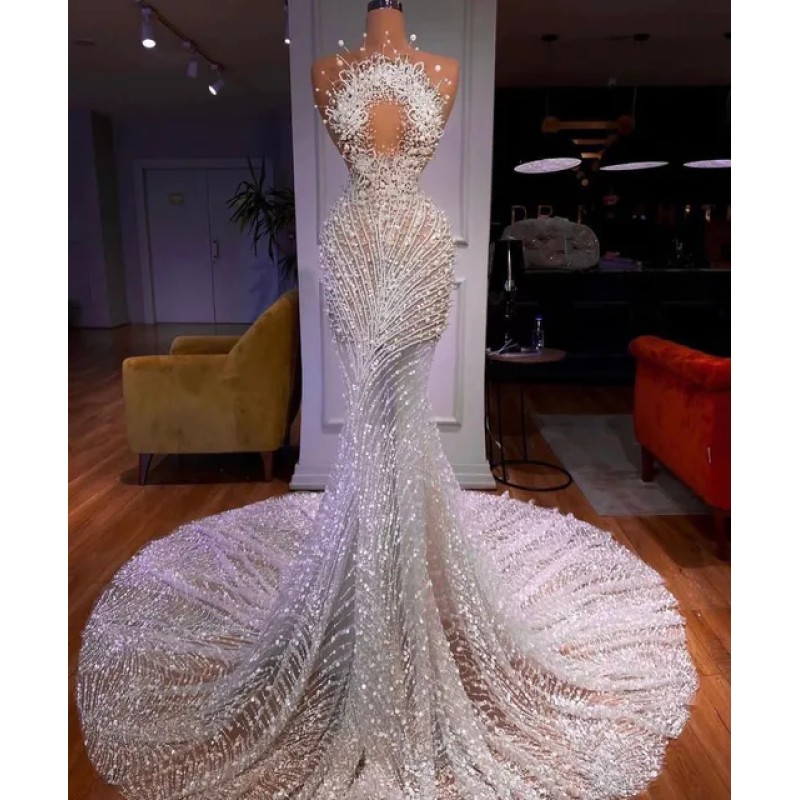 Buyers' PicksLuxury Mermaid Wedding Dresses Sleeveless Bateau 3D Lace Appliques Pearls Sequins Beaded Sexy Pearls Hollow Floor Length Plus Size Bridal Gowns abiti da sposa (Size Size Guide)