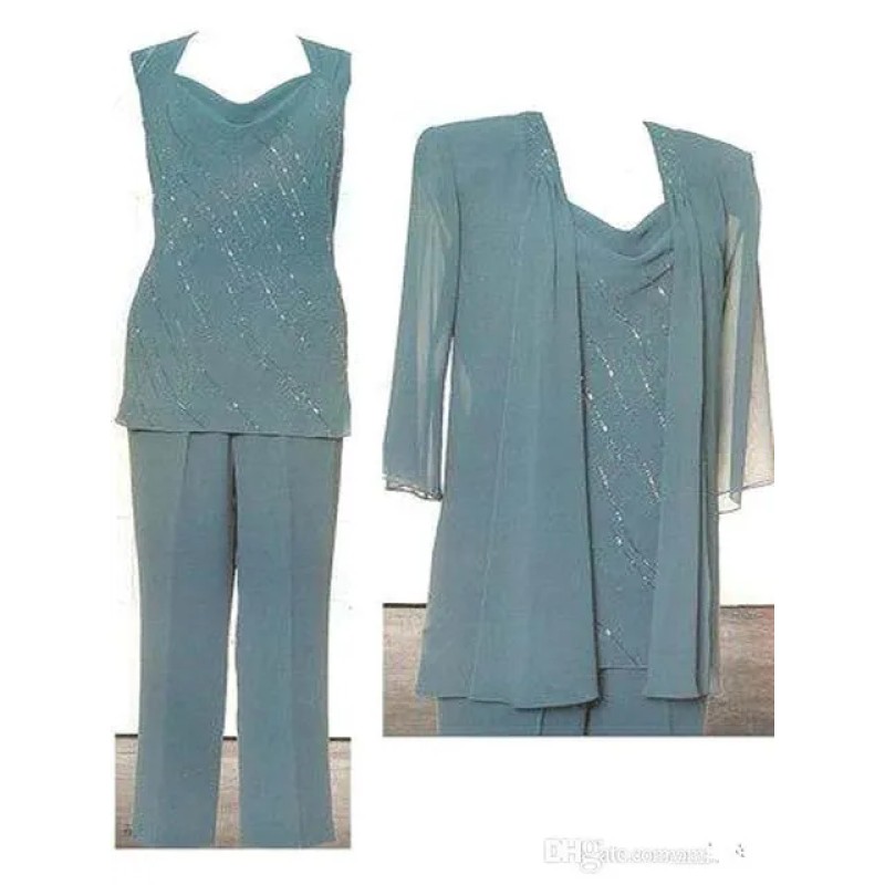 Long Sleeves Chiffon Formal Party Mother of the Bride Pant Suits With Jacket Beaded Sequin Three Pieces Mother of Groom Pant Suit BA7329